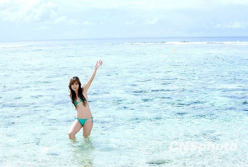 8月9日,海南,“超女”陈怡的最新海滩写真曝光。陈怡拍摄过程中穿着比基尼泳装,性感火辣身材一览无余。中新社发 AEG 摄
