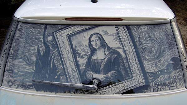 据英国媒体12日报道,来自美国一位德克萨斯的艺术家,经常利用汽车车窗上的灰尘作画。这些用尘垢创作的艺术品,让他的车成为真正的街头艺术。不过,他的作品也经常因为天气的变化而遭到破坏。