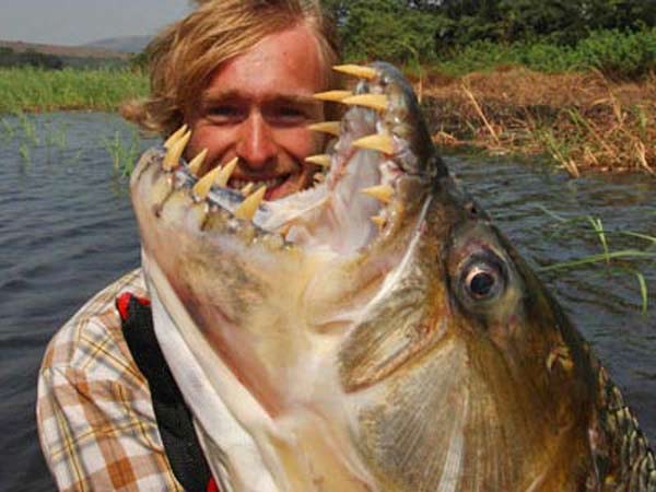 它们的上下颚短而有力,牙齿尖而锐利,血腥味对它们具有极大的吸引力。一群虎鱼能在5分钟内将一条受伤鳄鱼身上的肉全部撕光,不过,平时虎鱼的行动却是懒懒散散的。