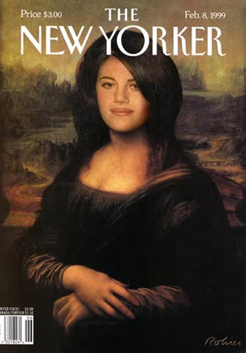 美国著名杂志《纽约客》使用了“莱温斯基版蒙娜丽莎”作为杂志封面,引起了不小争议。这幅图的重点在于,图中莱温斯基大嘴微笑,带有隐晦的讽刺意味。