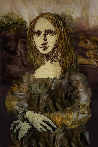 这幅“蒙娜豆腐”是由艺术家Ju Duoqi制作而成的,他选取的材料是大米、海带、蔬菜和豆腐这些食材。