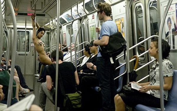 据英国媒体22日报道,美国摄影师扎克-海曼在纽约一辆地铁中仅花了30秒钟,就为一名女演员拍摄了一组10张照片。在公共场合“速拍”裸模是他惯用的手法。