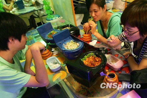 近日,位于北京地安门附近的一家餐厅成为了年轻人减压的新去处,这是北京第一家以厕所为主题的餐厅。餐厅的所有装饰,都是按照卫生间的样式设计,椅子是货真价实的马桶,餐具也是小号的马桶和便盆,当做桌子的木澡盆里养着活乌龟,处处透着新奇和可爱。用马桶装着的咖喱鸡饭、用蹲坑盛满的冰激凌,每个都是形象逼真,在菜单的名称上也都是用“招牌便秘黑干屎”之类的特色称为。据老板介绍,她开这家饭馆主要就是为了能让年轻人缓解忙碌的工作和生活带来的压力。中新社发 富田 摄