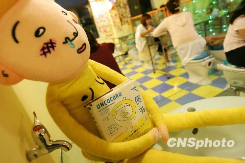 近日,位于北京地安门附近的一家餐厅成为了年轻人减压的新去处,这是北京第一家以厕所为主题的餐厅。餐厅的所有装饰,都是按照卫生间的样式设计,椅子是货真价实的马桶,餐具也是小号的马桶和便盆,当做桌子的木澡盆里养着活乌龟,处处透着新奇和可爱。用马桶装着的咖喱鸡饭、用蹲坑盛满的冰激凌,每个都是形象逼真,在菜单的名称上也都是用“招牌便秘黑干屎”之类的特色称为。据老板介绍,她开这家饭馆主要就是为了能让年轻人缓解忙碌的工作和生活带来的压力。中新社发 富田 摄