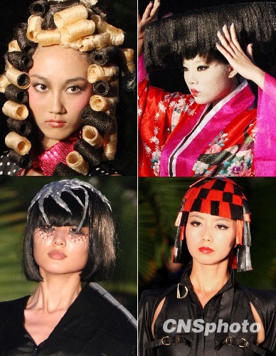 9月16日晚,正在海南三亚参加2009新丝路模特大赛总决赛的选手,在亚龙湾5号别墅,上演一场精彩的新款发型秀。(合成照片)中新社发 钱兴强 摄