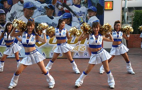 拉拉队一举手一投足,每一个动作,每一次发声都有规定,不能乱来;加油助威的手势和动作、口号、声援歌都是一代一代传承下来的。每个大学的鼓劲方式都有自己的特色,像东京农业大学跳的是“萝卜舞”,手执大萝卜声援;东北大学跳“木屐舞”;日本体育大学则是光膀子光脚狂叫。