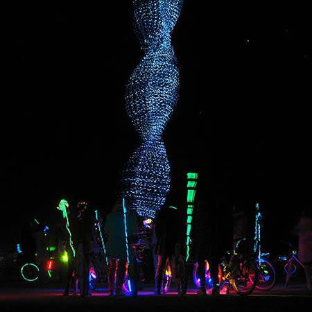 灯光雕塑是近年出现的一种新型艺术表现形式,将动态的光电元素加入到静态的雕塑设计中,一动一静的组合,让古老的雕塑艺术焕发出新时代的气息,也点亮了现代城市的夜景。