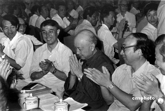 1986年6月27日,中国科协三大会议选举著名科学家钱学森(右二)担任新的科协主席。