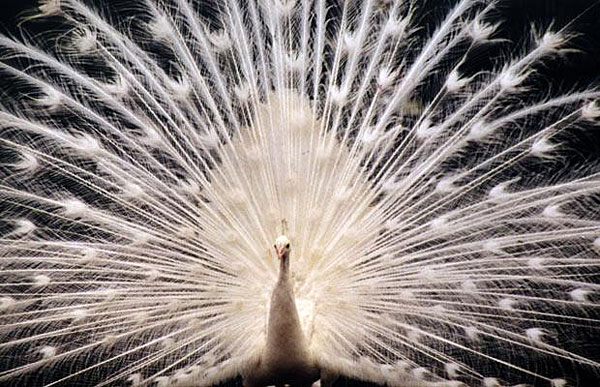 孔雀得了白化病,失去了魅力的羽毛,估计很难找到对象了。