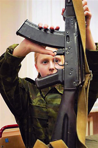 图为年纪小小的女孩已经学会了如何分解并组装AK-47。