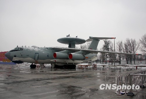 11月13日,北京沙河机场,中国自主研发的、参加国庆60周年首都阅兵的空警-2000型预警机、空警-200型预警机、轰油-6型加油机、轰-6H型轰炸机、歼-11、歼轰-7、教-8、红箭-12、红箭-9地空导弹武器系统发射车等空军主战装备一一排列,展示着中国人民空军发展壮大历史和战斗力发展新水平。空警2000。中新社发 国刚 摄