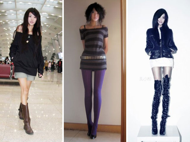 “长腿美眉”——孔燕松:北京体育大学学生、身高1.78米的美女孔燕松腿长就有1.17米,获网友票选为“美腿大赛冠军”。她更在网络上大发美腿照片,引来网友一片惊叹。