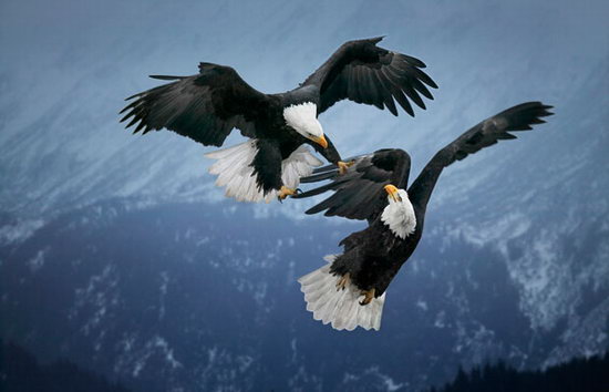 在阿拉斯加上空,两只秃鹰展开空战。