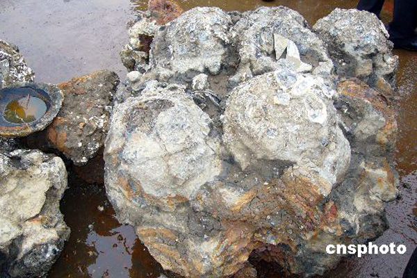 图为从“南海一号”最近探摸出的部分铁器。中新社发 索有为 摄
