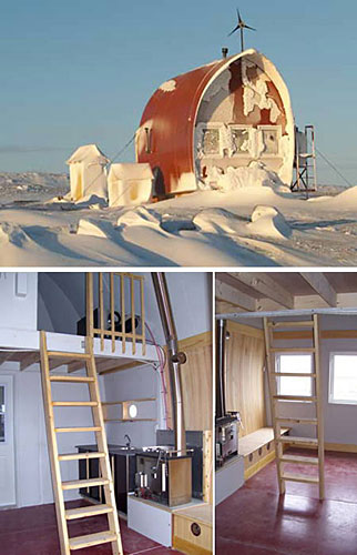 7、北极小屋:这个北极小屋看起来像一艘倒置的渔船,没错,这是Covey岛船厂的获奖作品,他们将造船原理应用到搭建极地小屋上,还是很成功的。这个小屋子非常保暖,可以就地组装,在极地没有电力,小屋配备了太阳能、风力和潮汐能系统,也能正常运作。
