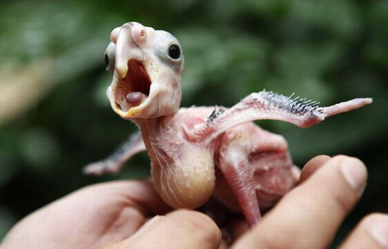 图为一只32天大的凤头鹦鹉,这种鹦鹉长大后体型可不小,一般来说,从头到尾身长在61厘米左右。(张晓来)
