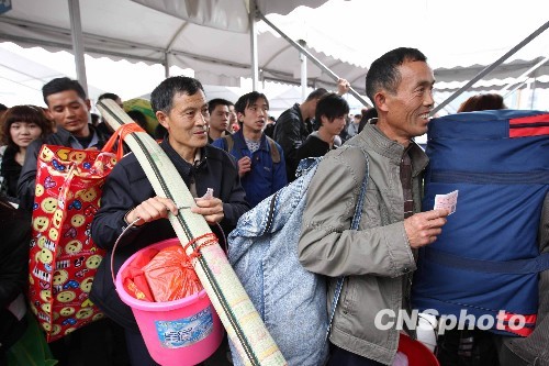 2010年1月20日离2010年春运还有10天,广州火车站迎来春运潮,以学生和农民工及探亲流为主的客流涌向广州火车站。针对春运潮的提前到来,广州铁路公安局和有关铁路部门积极应对,采取紧急予案,增调警力,引导和疏导旅客进站上车,确保广大旅客平安出行。中新社发 丁勇 摄