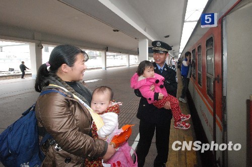 2月8日,随着年关临近,铁路迎来返乡旅客高峰。当天,广东境内铁路发送旅客达84万人,其中,广州车站发送旅客达23.5万人次。在拥挤的旅客流中,铁路有关部门加强运输组织,铁路公安民警加强安全提示和秩序维护,确保旅客平安出行。中新社发 丁勇 摄