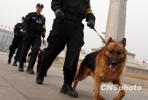 3月3日,北京警方加强天安门广场安保措施,确保全国两会顺利进行。中新社发 汤彦俊 摄