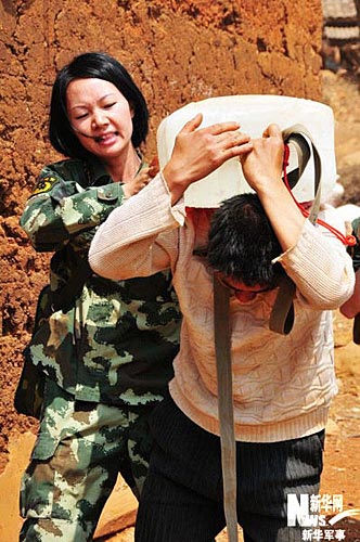 这一箱水有50斤重,一位村民看不下去了,抢过了王坤吉背上的水箱,替她背水。本文图片由刘昕、杨雷、吴邦纯、贾松基拍摄