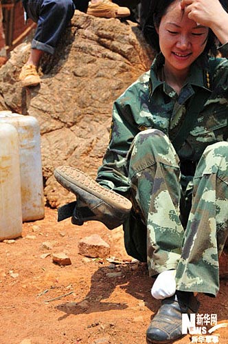 每次送完水,王坤吉都要整理一下鞋,水和土落在鞋里和成了泥。本文图片由刘昕、杨雷、吴邦纯、贾松基拍摄