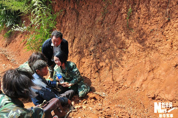 回去的路上,女子服务队碰到了一位因为缺水而中暑晕倒在路边的老人。王坤吉给老人拿来了矿泉水和一些药品。队员还给了这位老人20元钱。本文图片由刘昕、杨雷、吴邦纯、贾松基拍摄