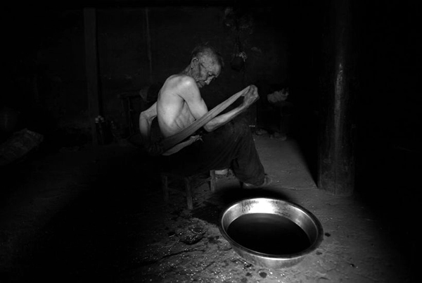 3月22日早上,今年74岁的张财光起床后赶忙抄起扁担挑起两个小水桶,去抗旱水源点接水。他独自一人生活,每天和牲畜要用20来公斤水。由于年纪大了,平时挑的水只能满足基本生活需要。
