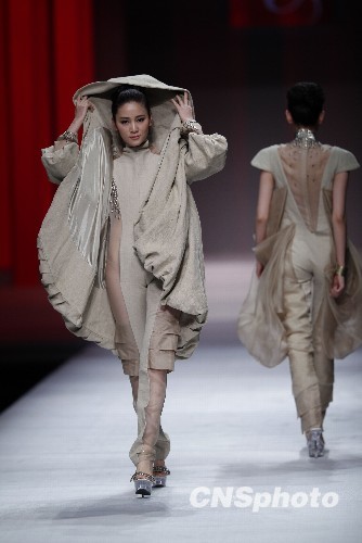 图为模特展示17号作品——中国江苏设计师孙梦婕设计的主题为“翼者”服装系列,该系列作品获“汉帛奖”优秀奖。中新社发 盛佳鹏 摄