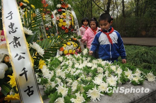4月3日,庚寅清明祭于谦活动在杭州于谦墓举行。来自学校、武警官兵及市民等百余人,通过宣读祭文、敬献花篮、朗诵于谦言志诗《石灰吟》,祭奠于谦,祈愿立志。中新社发 引炜 摄