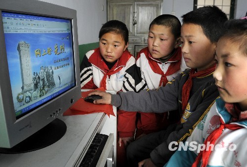 3月31日,山东省枣庄市山亭区建银希望小学学生通过网络向民族英烈敬献鲜花。当日,山东省枣庄市山亭区建银希望小学组织学生进行“缅怀革命烈士,弘扬革命精神——网上祭奠英烈”活动,同学们怀着对烈士无限敬仰的心情在网上献花、默哀、留言,寄托对先烈深切的哀思和崇高的敬仰。中新社发 李宗宪 摄