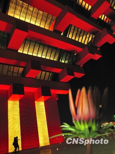 上海世博园区4月20日开始试运营,“东方之冠”中国馆对外揭开神秘面纱。中国馆展示面积15800平方米,是上海世博会所有展馆中最大的,也是中国在参与世博会历史上从未有过的场馆面积。展馆共分为“东方足迹”、“寻觅之旅”、 “低碳未来”三个展区,集中展示城市发展中的中华智慧。中新社发 井韦 摄