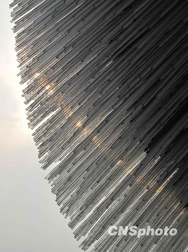 英国馆里安放着植物种子的透明亚克力杆。 中新社发 井韦 摄