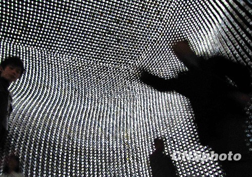 英国馆内密密麻麻的亚克力杆布满天花板。 中新社发 井韦 摄