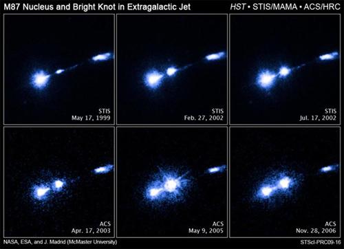 图为哈勃望远镜拍到巨型黑洞喷射气体流亮度神秘增强。