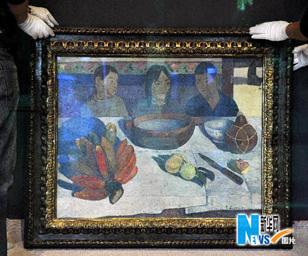 4月28日,高更的作品《餐点》运抵上海世博园法国馆。(图片来源:新华网 张岩 摄)