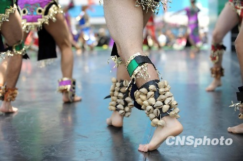 5月1日,上海世博会开园第一天,游客在美洲广场欣赏浓郁的墨西哥风情舞蹈。中新社发 陈文 摄