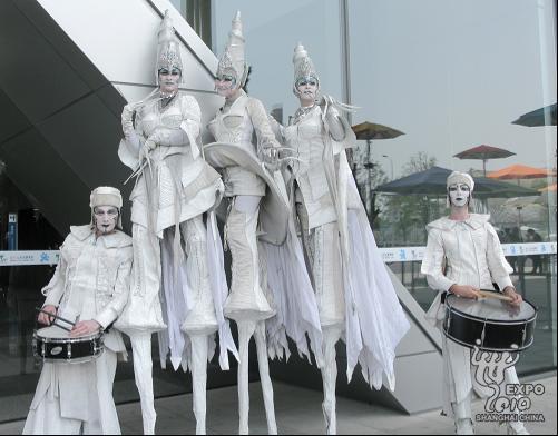 5月1日是上海世博会正式开园的第一天。一早,位于浦东世博园区的主题馆门口人头攒动,为排解众多参观者因长时间排队等候而可能产生的无趣乏味感,主题馆方面特别邀请了来自荷兰的“近距离剧团”,为排队参观者带来富有浓郁北欧风情的精彩演出。图片来源:世博网