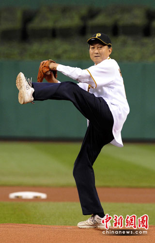 因美军在冲绳的普天间基地转移问题,日本首相鸠山由纪夫,2日早上在民主党参众议员大会中正式宣布辞去日本首相职务。图为2009年9月25日,鸠山由纪夫在美国职业棒球大联盟道奇队主场显露身手。
