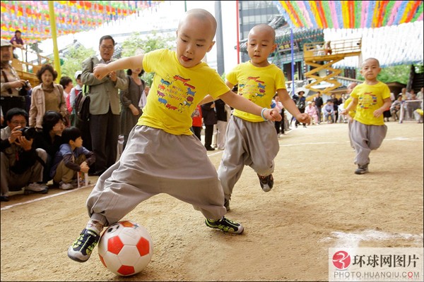 韩国小和尚上演“少林足球” 迎南非世界杯:2010年5月,韩国首尔曹溪寺院举行了儿童足球赛,一群四五岁的孩子和小和尚参加了这场足球友谊赛。这场比赛是佛诞节活动的一部分,也是为了迎接2010世界杯足球赛的到来。