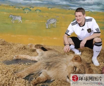 德国球员拍摄世界杯写真 小猪与狮子亲密接触:2010年6月,德国《体育图片》邀请德国国家队的球星为南非世界杯拍摄了一组名为《世界野生动物园》的图集。在这组图片中,队长拉姆、“小猪”施魏因施泰格等队员都与非洲大草原的动物亲密接触。