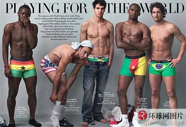 2010年5月,美国《名利场》(Vanity Fair)杂志邀请到包括C罗、卡卡、德罗巴等足坛巨星,为即将到来的南非世界杯,拍摄了一组封面照。照片上的足坛大腕们,一改以往拍摄时尚写真时西装笔挺的形象,而是赤膊上阵,并穿上印有他们各自国家国旗的内裤,大秀健硕肌肉和身材。