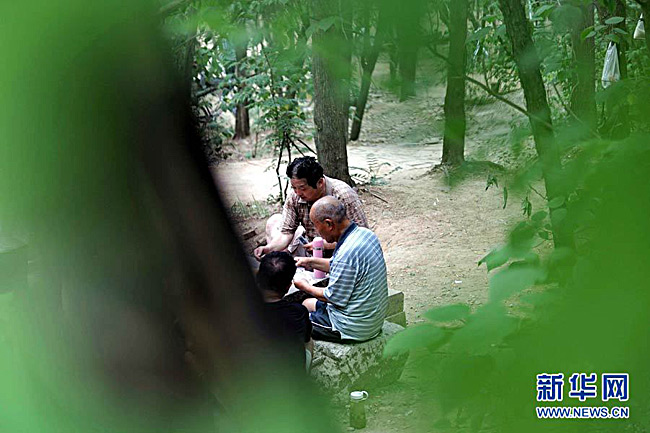 6月30日,在济南泉城公园,市民在树荫下打扑克。当日10时20分,山东省气象台解除连续三天的高温橙色预警信号。郭绪雷 摄