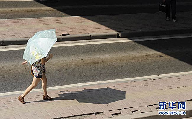 7月1日,行人打起遮阳伞走在广州街头。当日,广州迎来今年首轮高温天气,最高气温达到35摄氏度。据气象部门预计,由于受副热带高压控制,未来3-4天,粤北、粤西北部、珠三角、粤东的部分市县将持续高温晴朗天气,最高气温将达35至37摄氏度。卢汉欣 摄