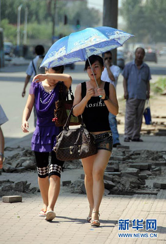 6月24日,市民在高温中出行。 6月23日开始,黑龙江省迎来持续高温天气,高温将持续一周并影响黑龙江全省。梁书斌 摄