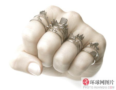 戒指也能防身?一只手戴了很多带刺的戒指有些极端,其实只戴一个不仅美观而且同样可以起到防身的作用。这些戒指设计的款式很多,有建筑物、动物、植物,单个看起来很有艺术性。设计师是荷兰的Zelda。