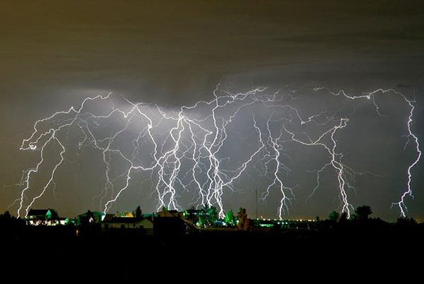 美国科罗拉多州丹佛市,雷暴光顾“风暴追逐者”罗格·黑尔的房子。