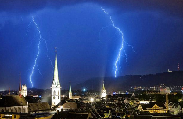 强雷暴袭击瑞士苏黎世,暴风骤雨的天气与苏黎世往日平静、安详的景象形成了鲜明对比,彰显了大自然的力量。