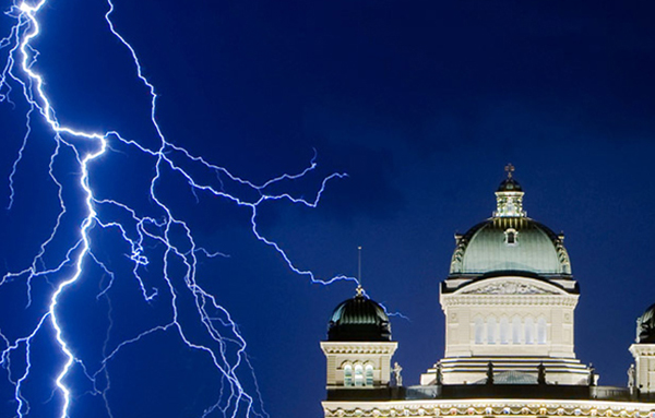瑞士伯尔尼,联邦宫殿遭遇雷电时的魅影。