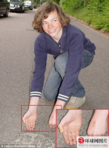德国埃森市14岁男孩盖里特·布兰克上学途中,突然看到天空中一个发着白光的火球朝他笔直飞来,布兰克还没反应过来,那个火球就从他的左手手背上擦过,将他震倒在地,然后在地面上轰隆一声撞出一个直径约30厘米的大坑。惊魂未定的布兰克从冒烟的陨坑中找到了一颗豌豆大小的陨石,他这才意识到自己刚才竟被一颗以3万英里时速飞向地球的天外小陨石砸中,但他却奇迹般地逃过一死!