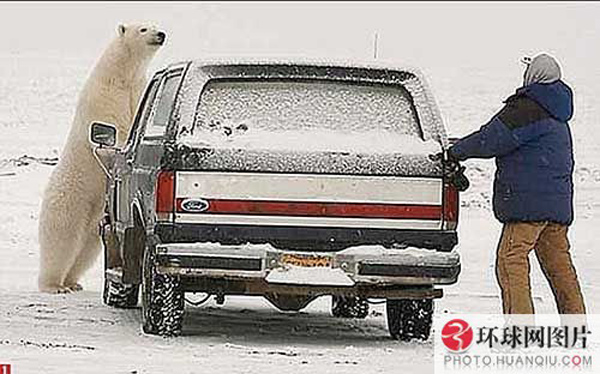 美国阿拉斯加州一名男子在大雪天驾车出行时,不慎遇到一只强壮的北极熊。这只北极熊饥饿难耐,想拿这名男子当“晚餐”,于是北极熊和这名男子在雪地里绕着车展开一场“猫捉老鼠”的惊险游戏。最终男子成功摆脱了北极熊的追逐,死里逃生。这一幕被附近一名摄像师拍摄下来。